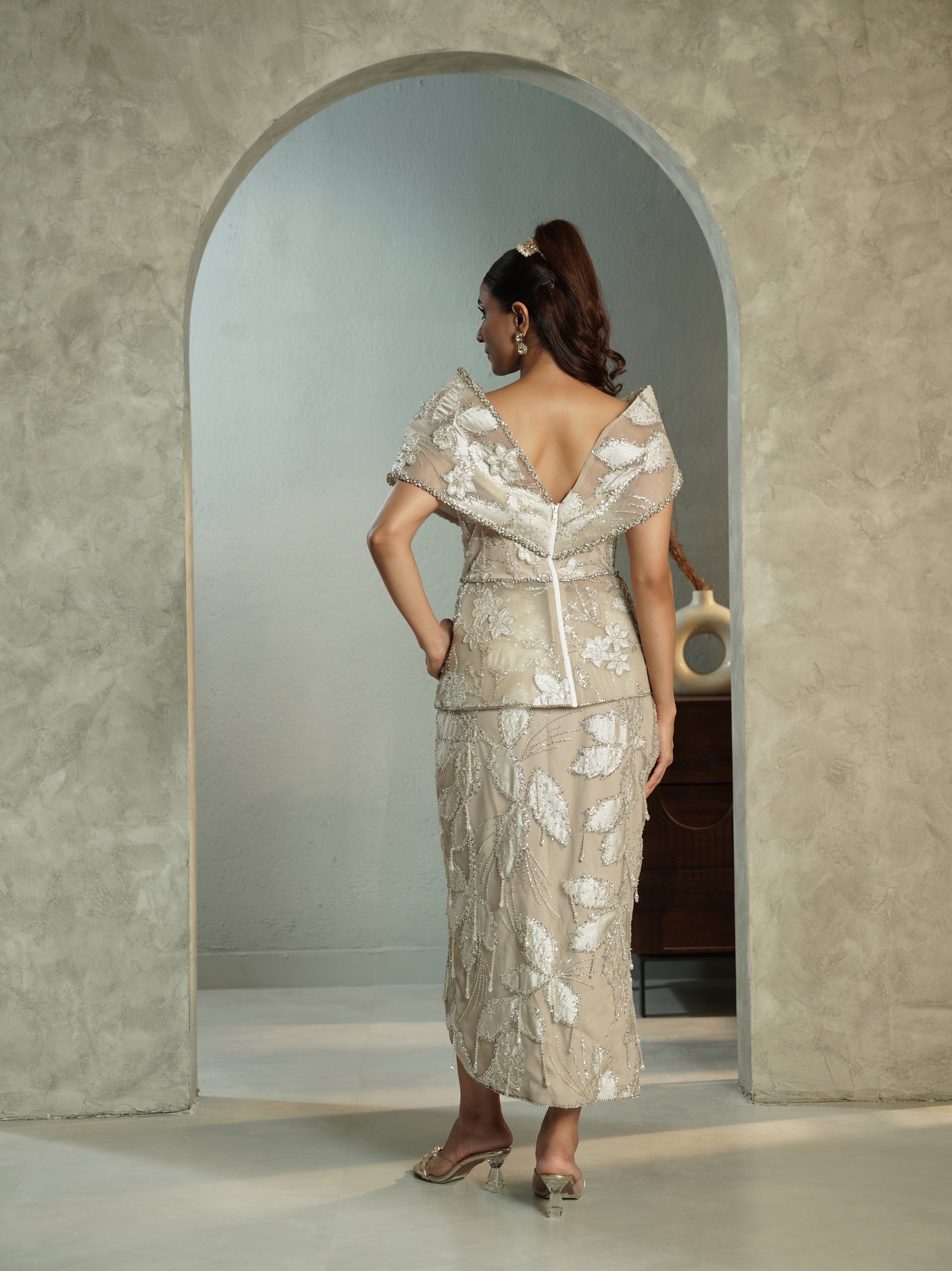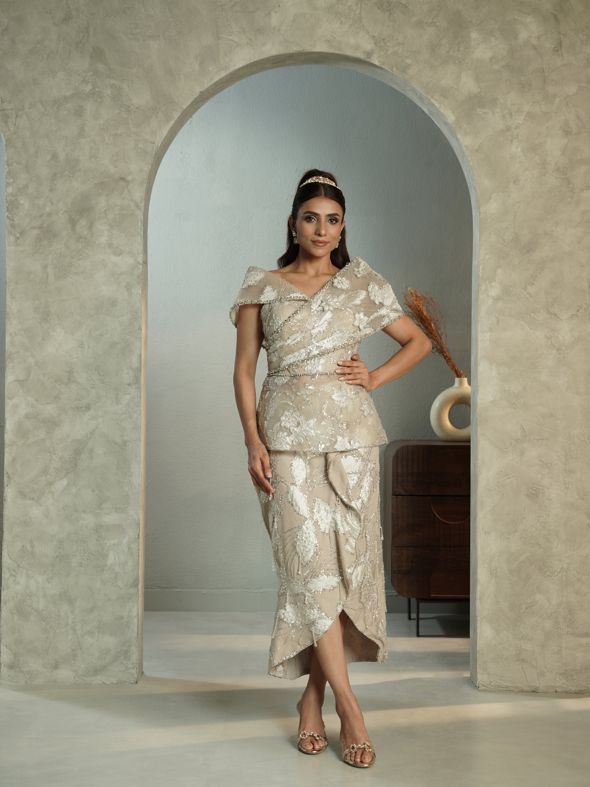 Peplum dramatic top and ruffled ankle length skirt, Elevate your festive style with Pulse at Pink’s ELYSIA Set, featuring a peplum dramatic top paired with a ruffled ankle-length skirt. This designer fusion outfit blends luxury craftsmanship with modern elegance, perfect for weddings, parties, and festive celebrations. Explore the latest in women’s designer wear, luxury ethnic fashion, and premium festive sets at Pulse at Pink