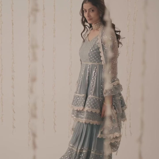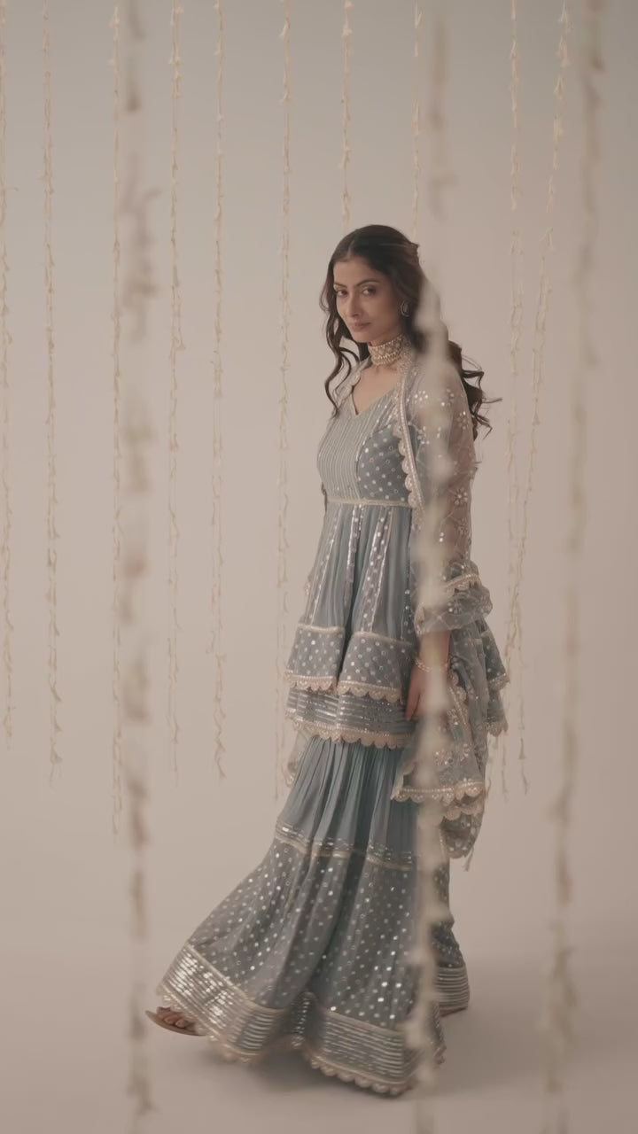 A beautifully embellished gharara, pleated to perfection for effortless movement